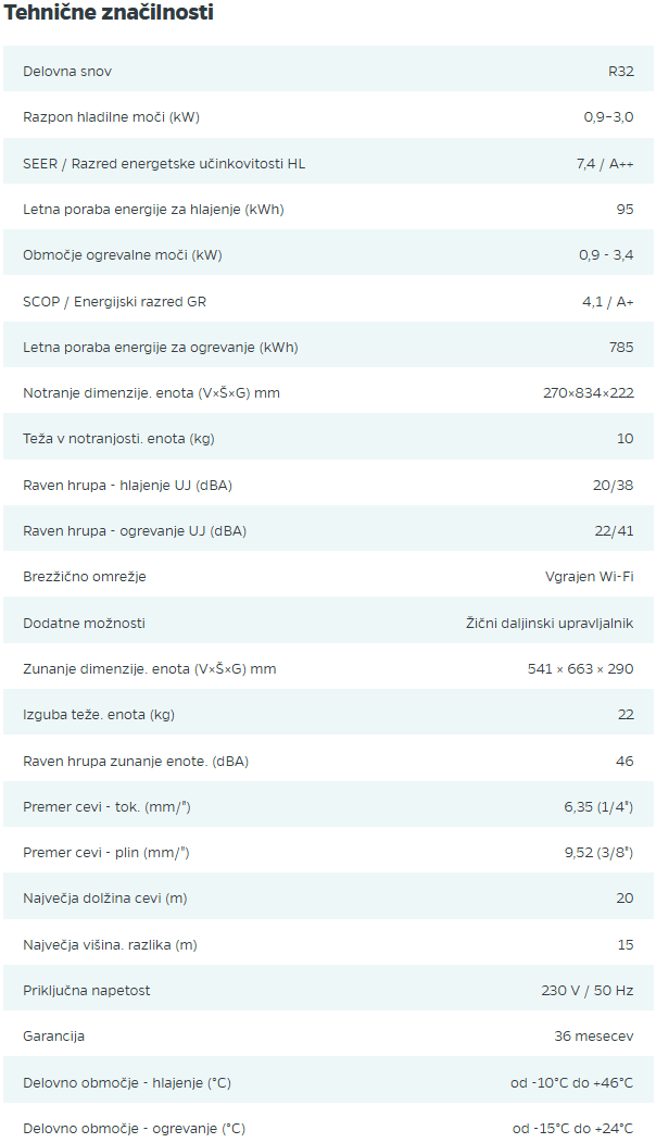 Uključuje: površinu za hlađenje, površinu za grijanje, udobnost i efikasnost.