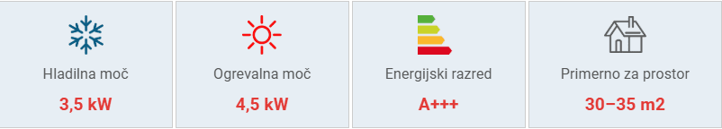 Hladilna moč: 3,5 kW (0,9–4,0) kW