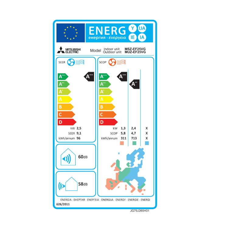 MITSUBISHI klimatska naprava MSZ-EF35VGK W/B/S*/MUZ-EF35VG – z montažo