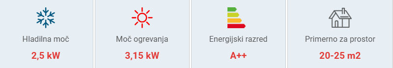 | Hladilna zmogljivost klimatske naprave | 2,5 kW | |